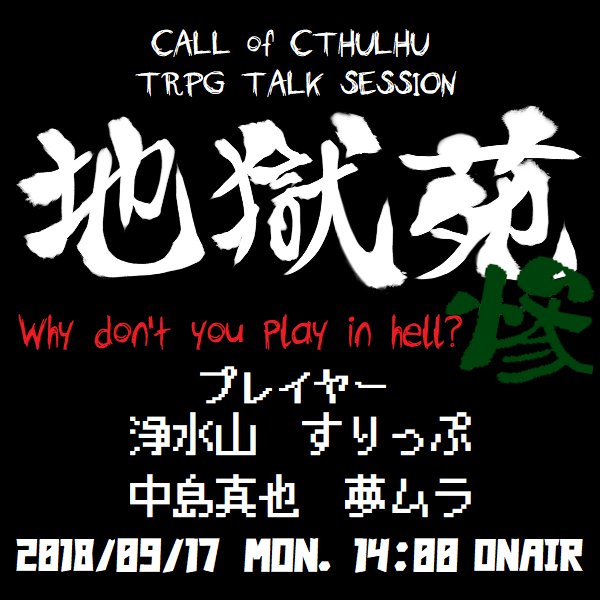 ジョースイ على تويتر 11 5 土 15時頃からクトゥルフ神話trpg 水月鏡花のバナフセジー をします 二回目です 前回所要時間は七時間でした Pl ミスターさん シャイさん ぜろつーさん じんべぇさん このシナリオは20歳未満の方は視聴を控えた方がよいかもしれ
