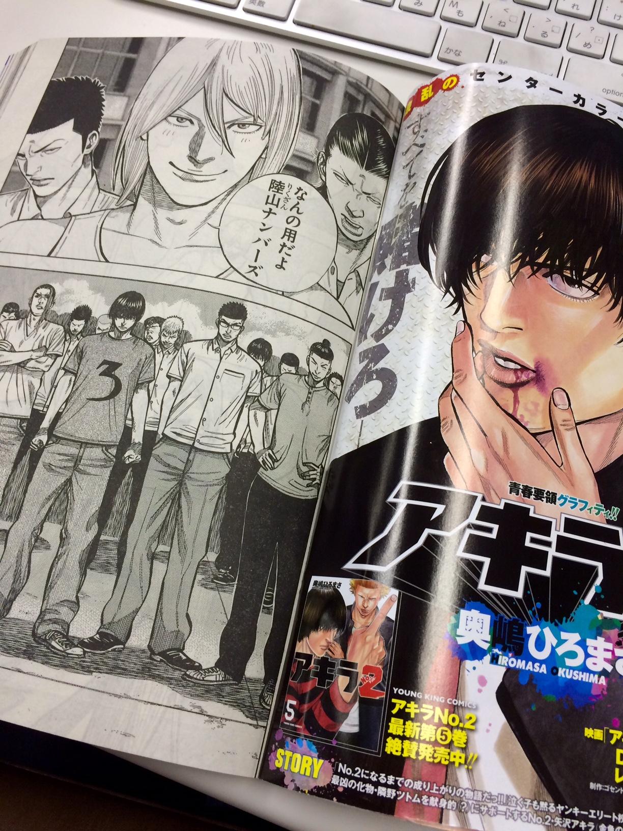 Twitter இல アキラno 2 公式アカウント ヤングキング22号は昨日から発売中です すみませんご報告が遅れました 真喜志にツトムの真意を問いに向かった希林高校 案の定アキラ 達は希林の奴らに囲まれて一触即発のムードに 緊迫の アキラno 2 第46話ぜひお