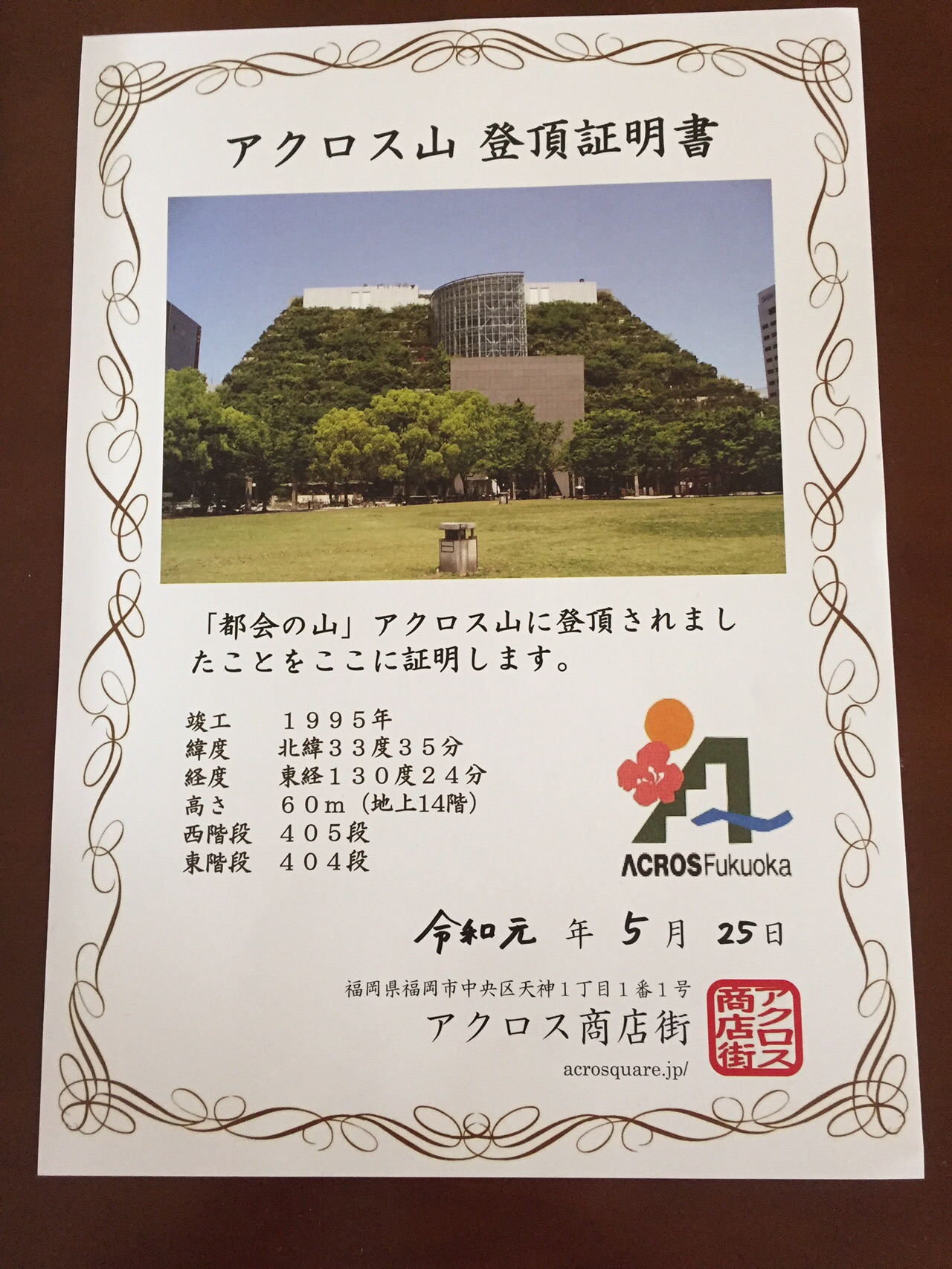 登頂証明書 アクロス商店街